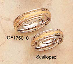 6 mm Benchmark Comfort Fit Two Tone 14k "Scalloped" Ladies & Man's Wedding Band 1.8 mm thick |